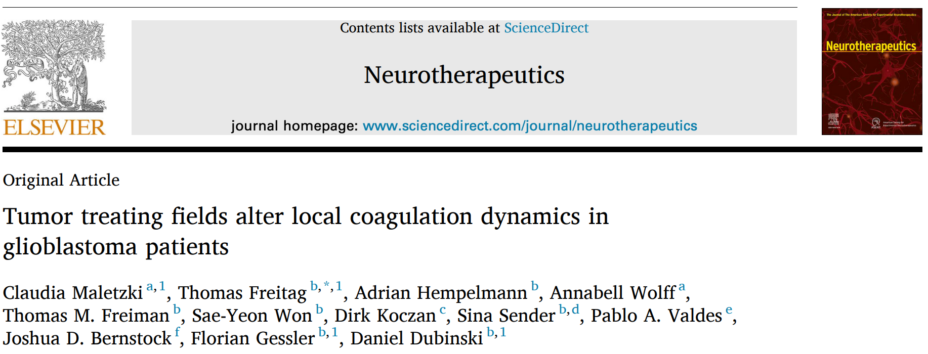 Tumor treating fields alter local coagulation dynamics in glioblastoma patients.